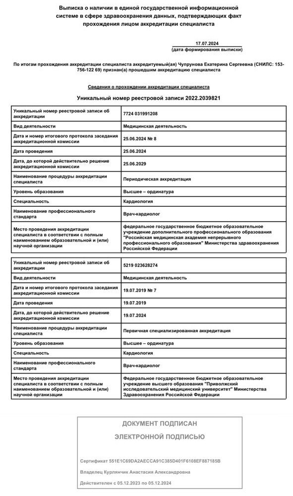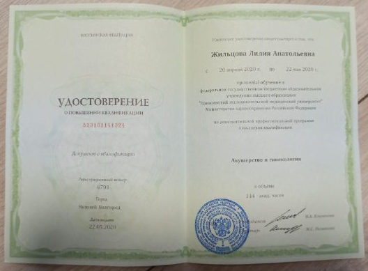 – 2012г. прошла повышение квалификации в приволжском исследовательском медицинском университете по специальности Неврология