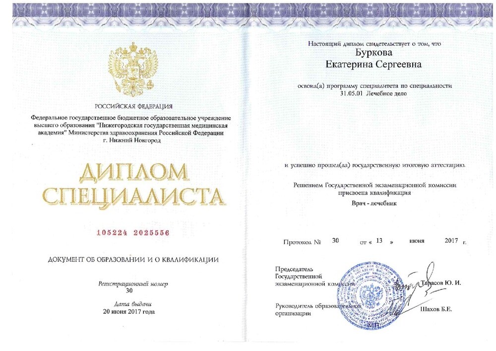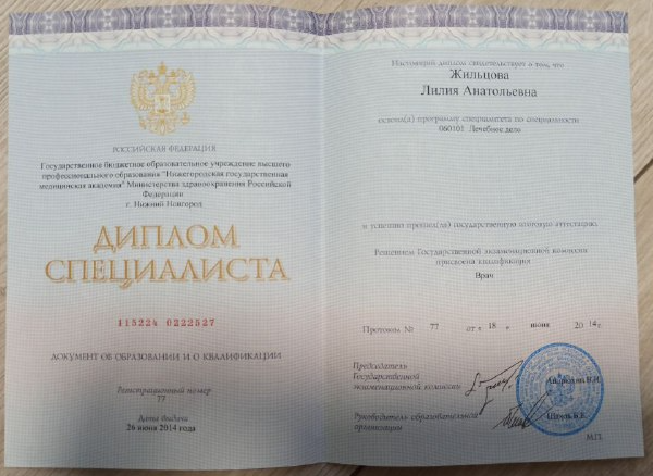 – В 1996г. закончила обучение в Нижегородской медицинской академии специальность педиатрия