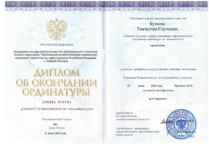2023 – по н.в ФГБОУ ВО “Приволжский исследовательский медицинский университет” Министерства Здравоохранения РФ, ординатура, специальность Анестезиология и реанимация