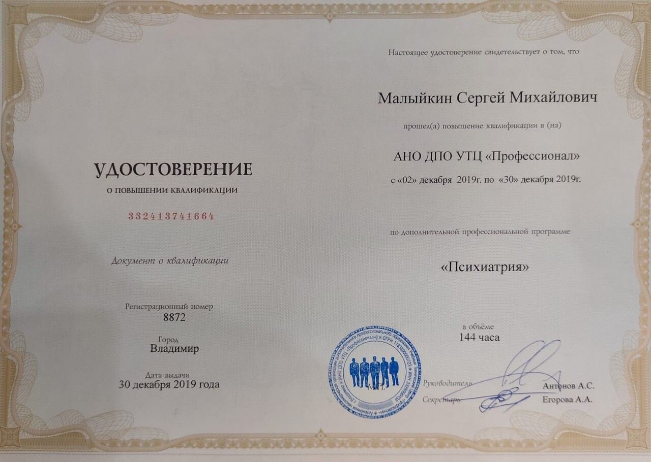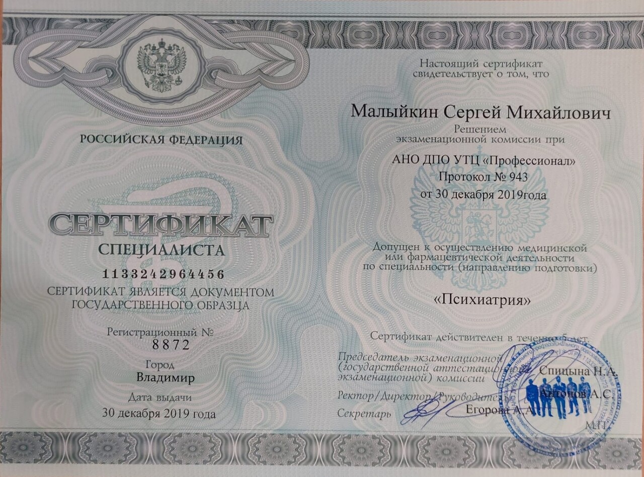 – июнь 2019г — сертификат по локальным инъекционным блокадам