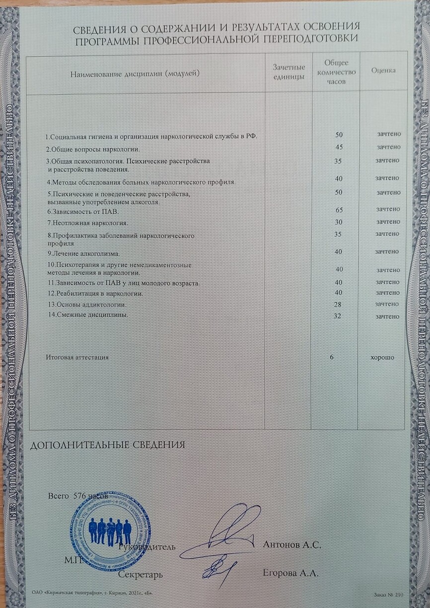 – ноябрь 2023г – сертификат врач физической и медицинской реабилитации