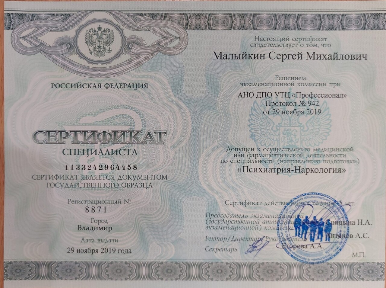 – май 2019г — сертификат по ботулинотерапии в практике врача невролога
